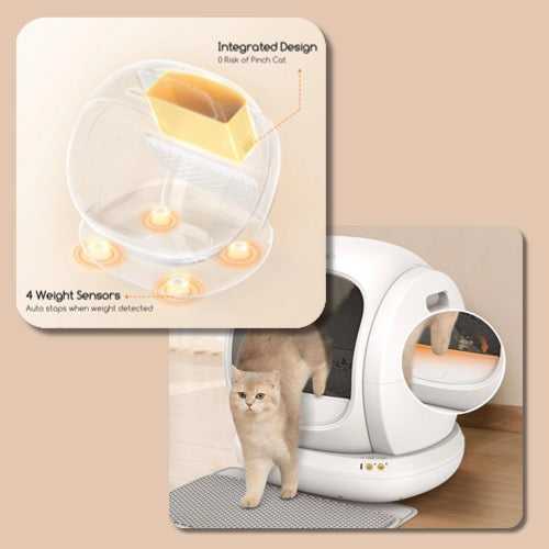 Unique integrated anti-pinch structure of the automatic cat litter box eliminates the risk of cats getting caught between the litter chamber and the drum. Equipped with 9 high-precision sensors for weight detection, motion stopping, and abnormality alerts to ensure cat safety.